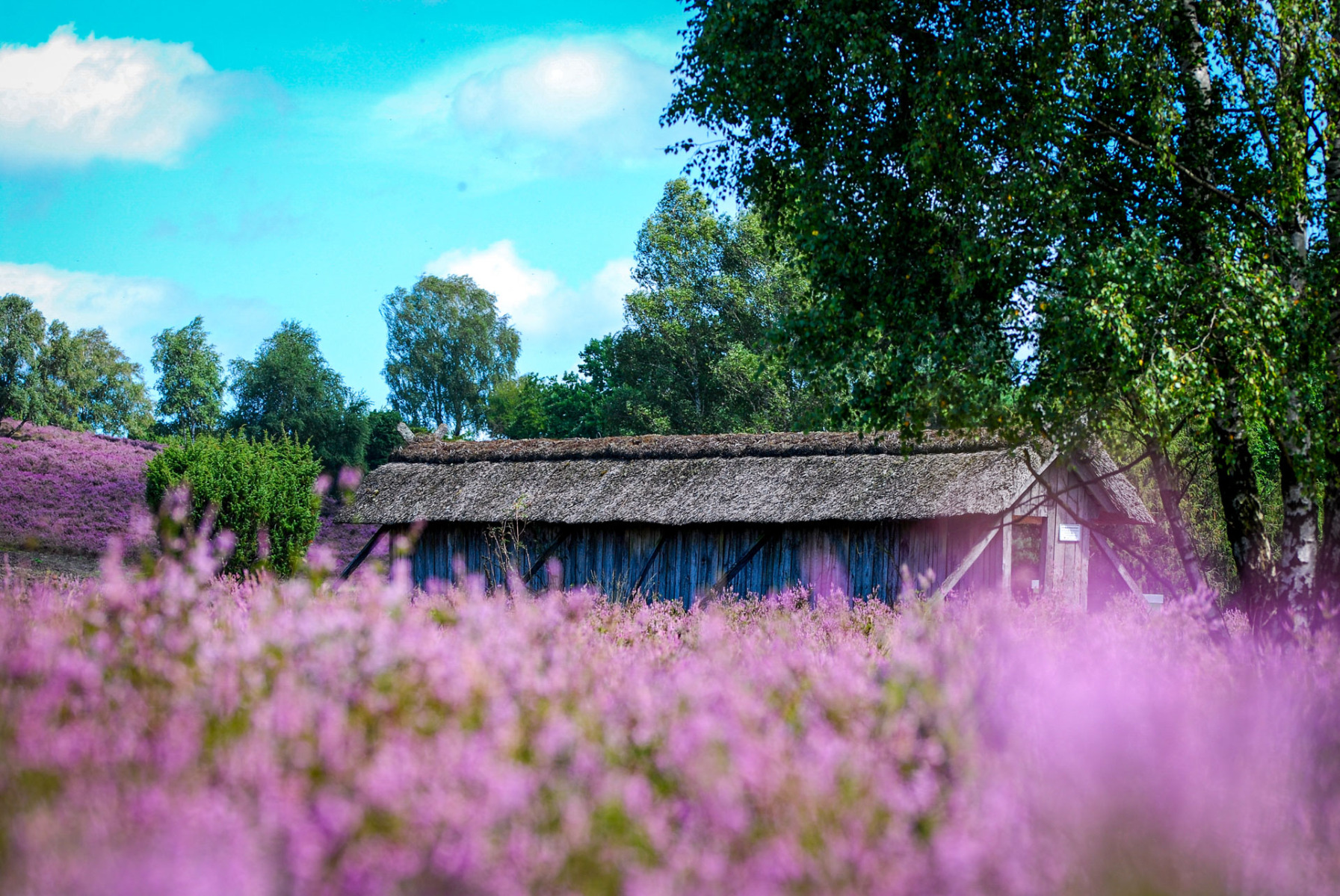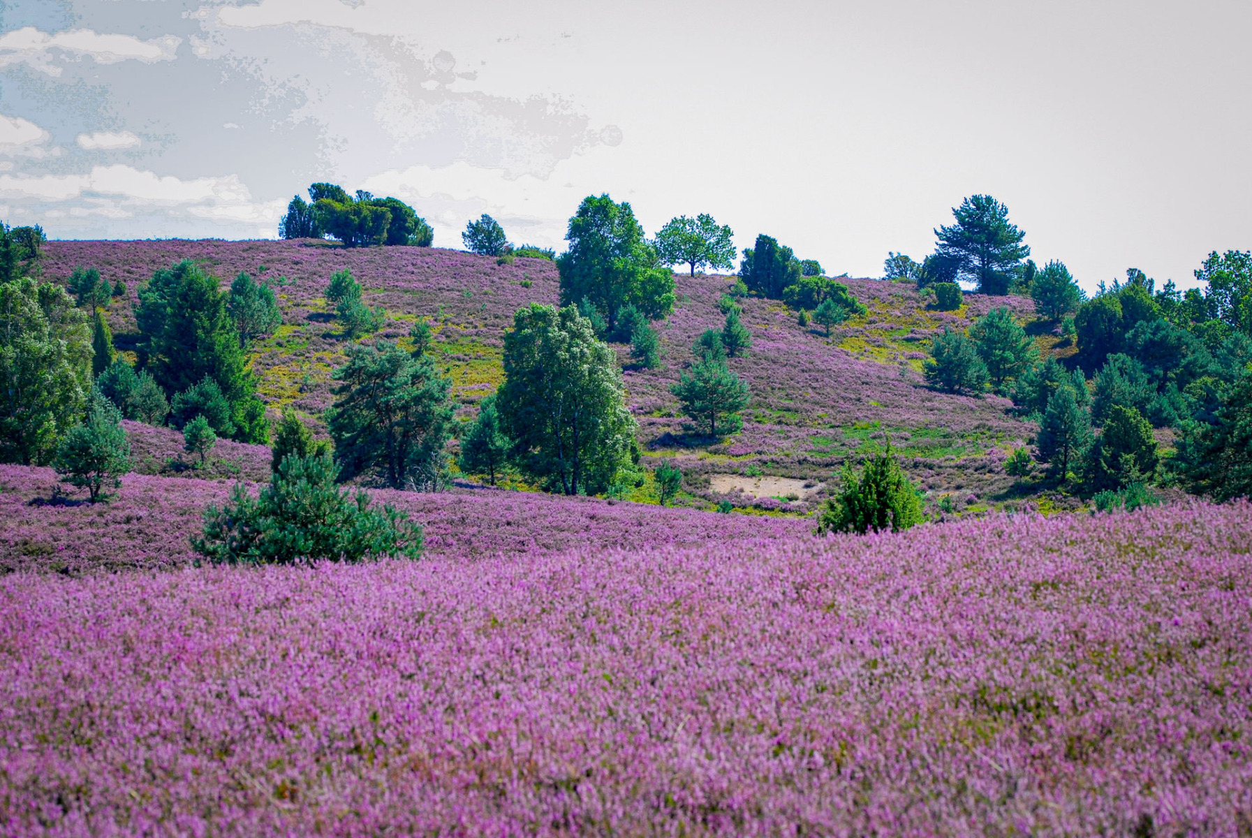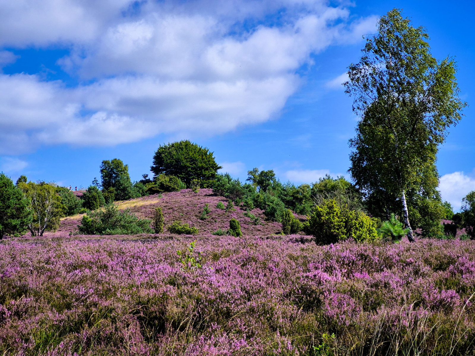 Mit den Fotofreunden, Bollerwagen und Nikon ging es in die Lüneburger Heide nach Niederhaverbeck. Zu Beginn der Wanderung führte der Weg durch eine wunderschöne Allee. Erste Pilze lugten trotz Trockenheit aus dem Boden. In den Heideblüten sammelten die Bienen fleißig den Nektar für leckeren Heidehonig. Bänke luden zum Verweilen und Genießen ein. Jemand aus der Gruppe hatte auch mal wieder die große Glaskugel dabei, was einen ganz anderen Blickwinkel erzeugte.