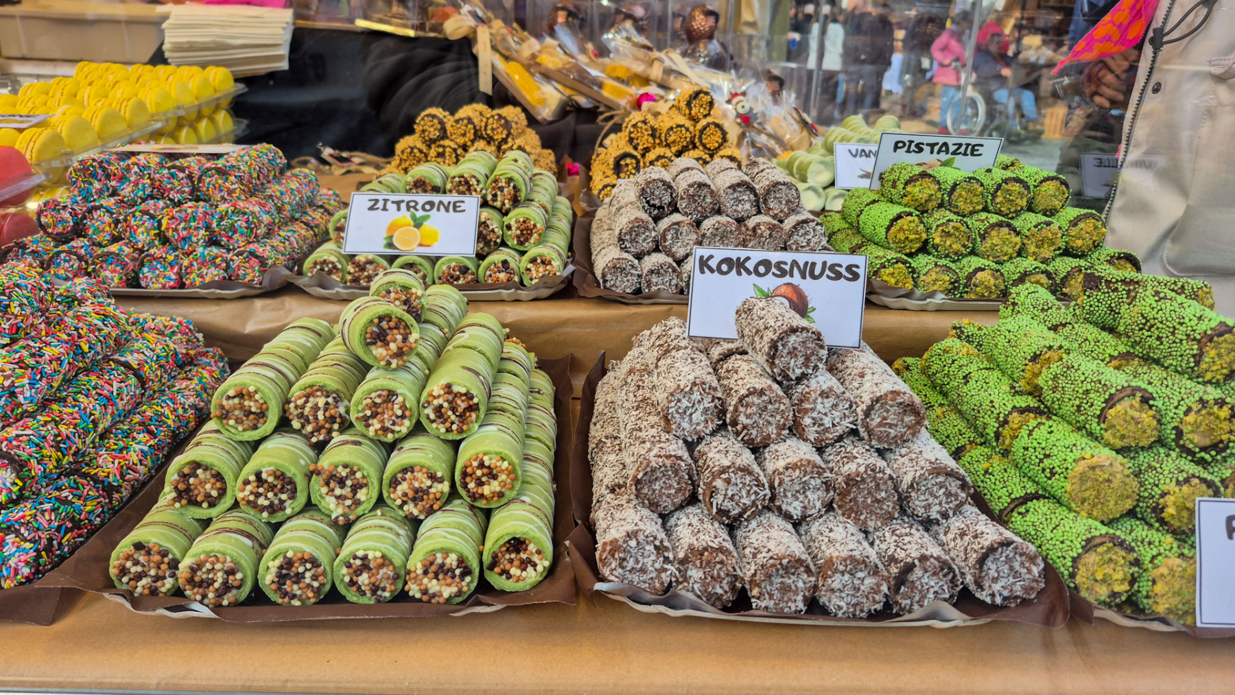 Verführung und Genuss der leckersten Art gab es in der Altstadt von Wernigerode. Schokolade vom Feinsten aus Deutschland, Belgien, Holland und Italien, wer kann da schon Nein sagen. Handgemachte Tafeln mit Früchten, Nüssen, Smaties, Bildern und viele anderen leckeren Varianten dekoriert, die wahre Versuchung.